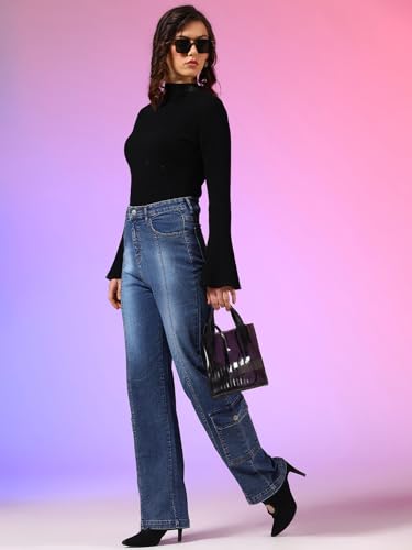 Miss Chase Women's Boot Cut High Rise Cropped Stretchable Denim Jeans