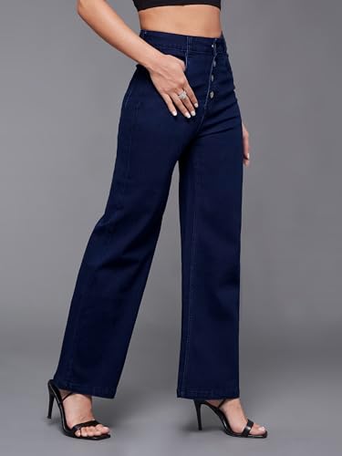 Miss Chase Women's Blue Relaxed Fit Mid Rise Regular Length Patch Denim Stretchable Jogger Pants