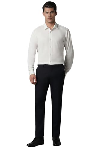 Park Avenue Men's Smart Fit Polyester Blend Flat Front Checks Pattern Dark Brown Formal Trouser