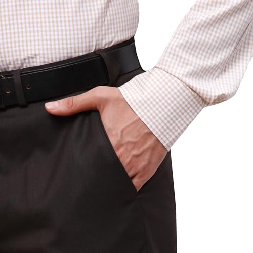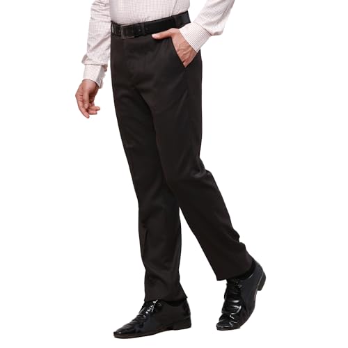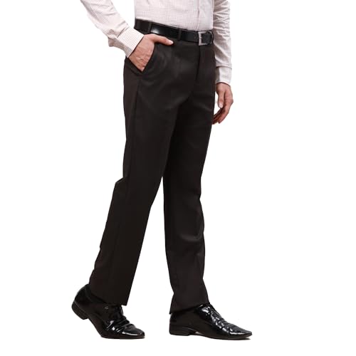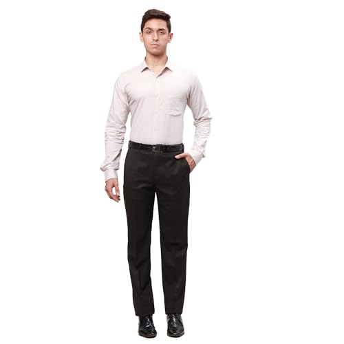 Park Avenue Men's Regular Fit Checks Pattern Poly Viscose Blend Flat Front Formal Trouser