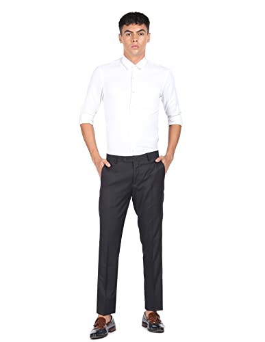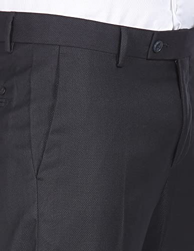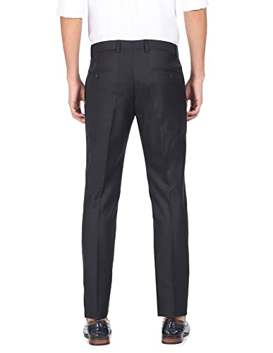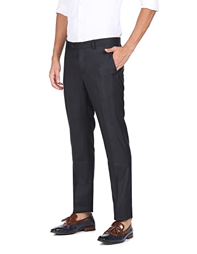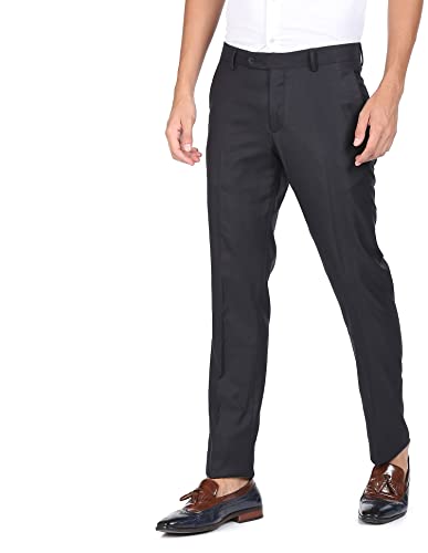 Arrow Men Navy Mid Rise Patterned Weave Formal Trousers