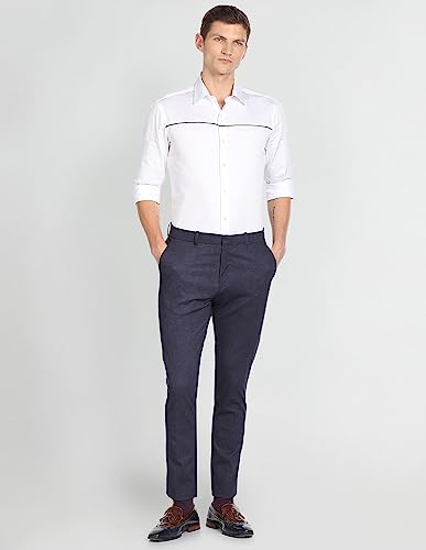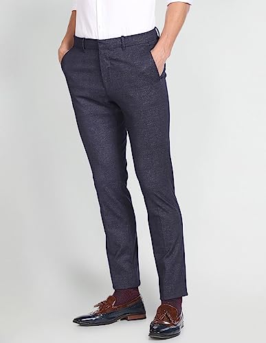 Raymond Men Slim Fit Solid Pattern Poly Viscose Blend Flat Front Formal Trouser