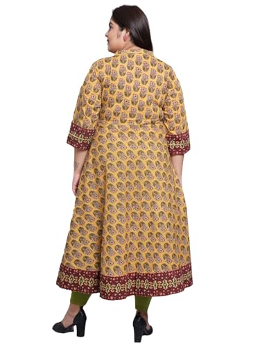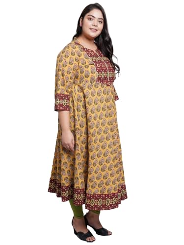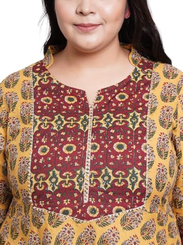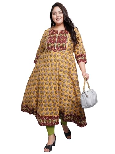 Janasya Women's Cream Cotton Floral A-Line Tunic