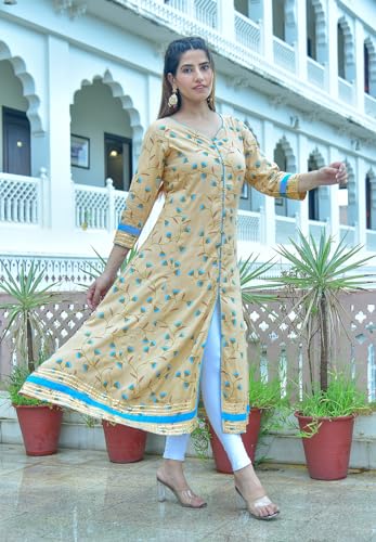 Yash Gallery Women's Cotton Gold Printed Anarkali Kurta