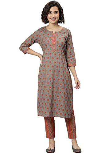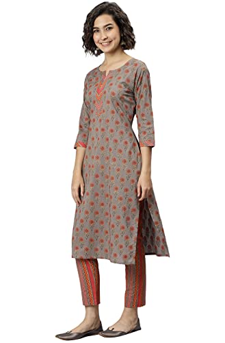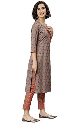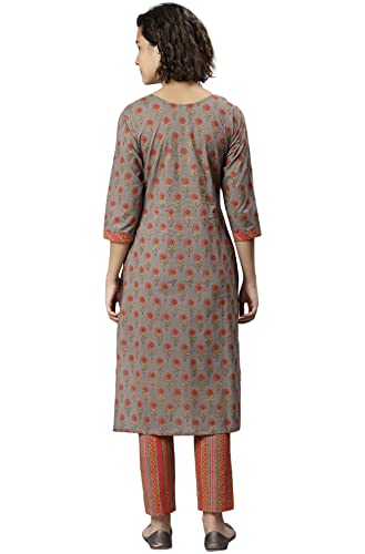 BIBA Women Navy Rayon Straight Kurta Pants Set