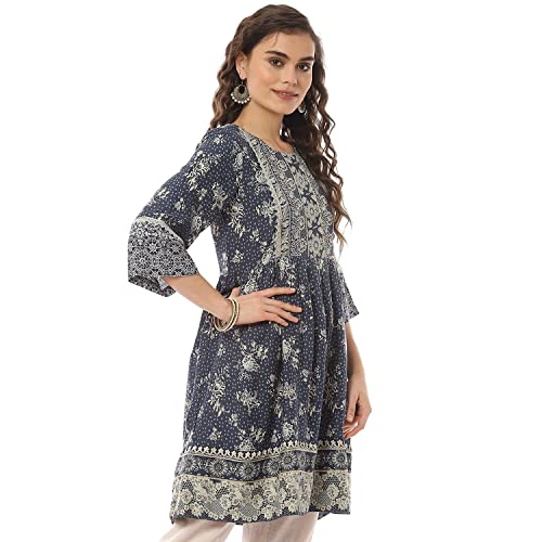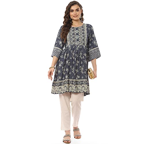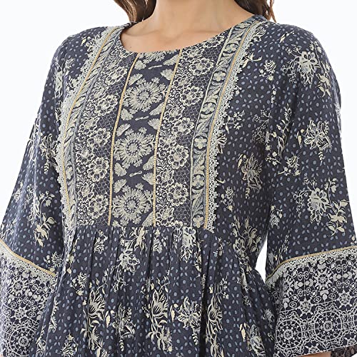 Janasya Women's Cotton Floral Printed Anarkali Kurta With Palazzo And Dupatta