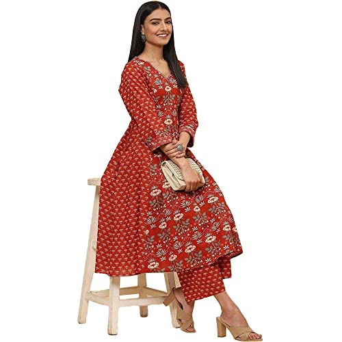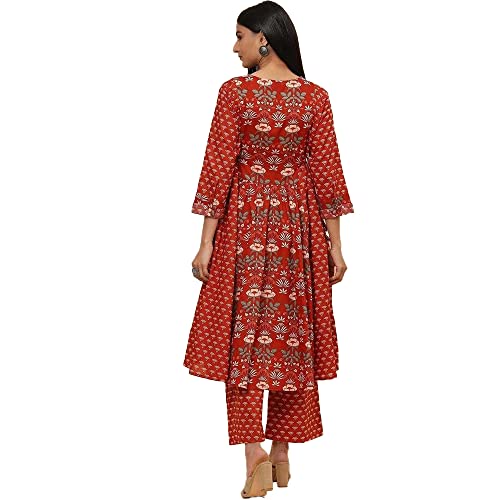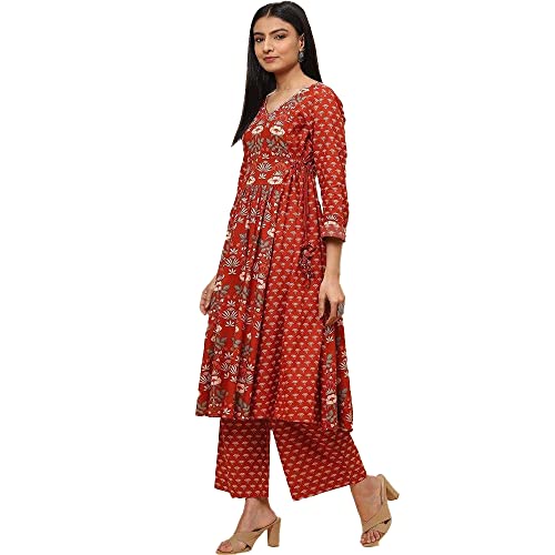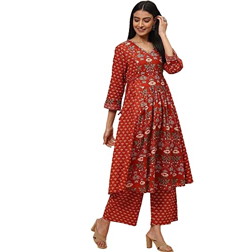 Yash Gallery Stylish Cotton Printed High-Low Hemline Kurta for Women (Blue)