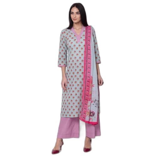 BIBA Women Cotton Straight Kurta Palazzo Suit Set