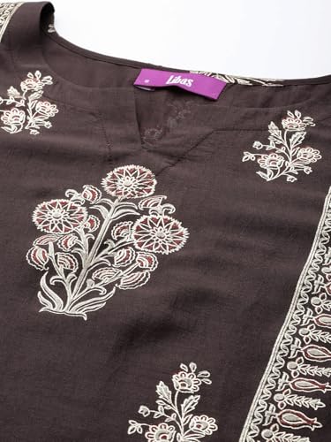 Libas Brown Printed Poly Crepe Straight Kurta With Trousers
