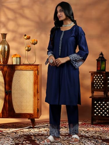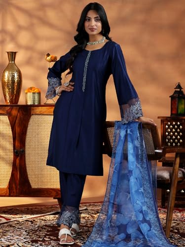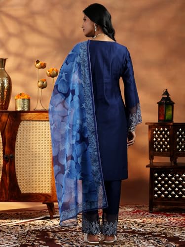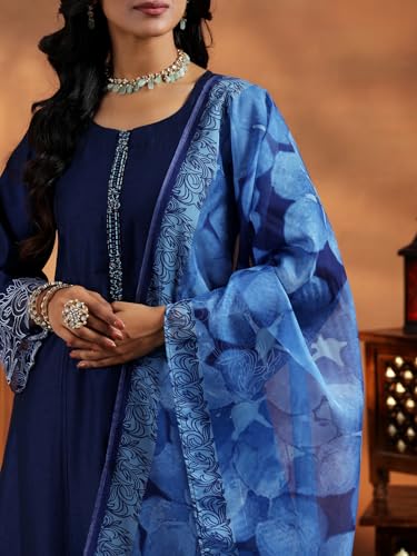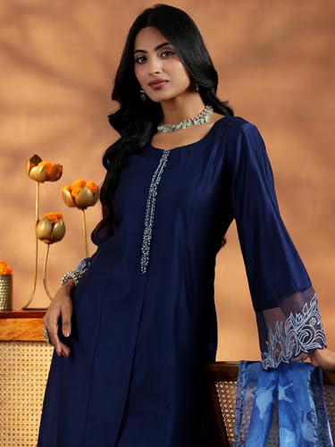 Libas Off White Printed Silk Blend Straight Kurta With Palazzos & Dupatta