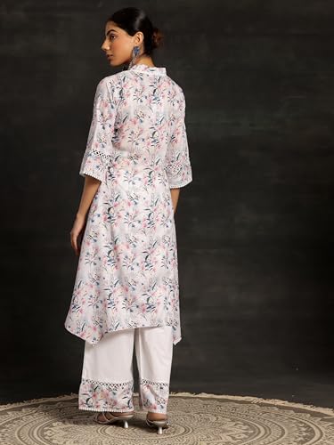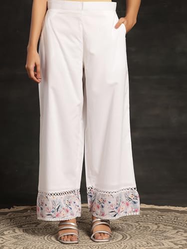 RAJMANDIRFABRICS Women's Cotton Embroidered With Lace & Solid Colour Full Straight Kurta Pant With Dupatta Sets
