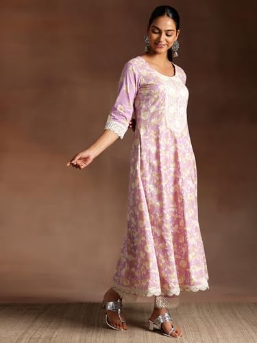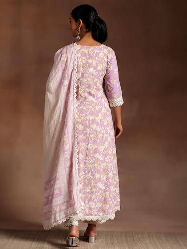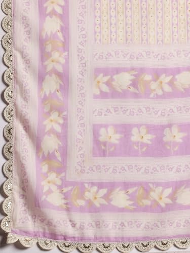 Libas Off White Yoke Design Cotton Straight Kurta With Palazzos & Dupatta