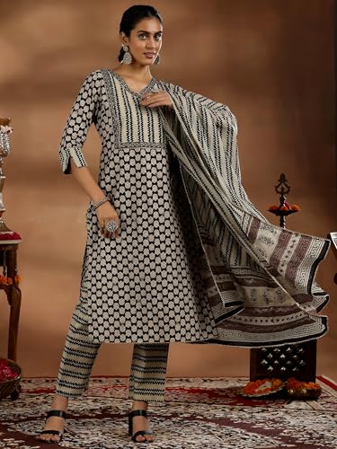 Libas Green Yoke Design Silk Blend Straight Kurta with Trousers & Dupatta