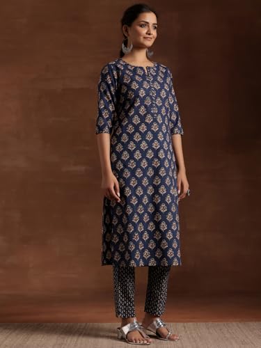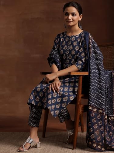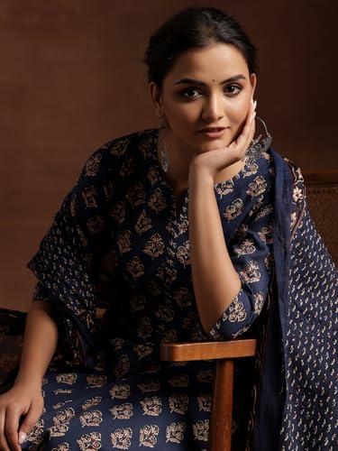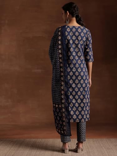 INDO ERA Women's Embroidered Silk Blend Calf Length Straight Kurta & Pant With Dupatta Set (KH9PR6091)