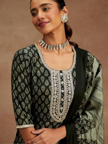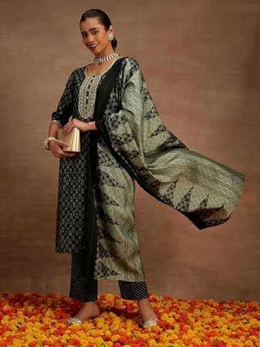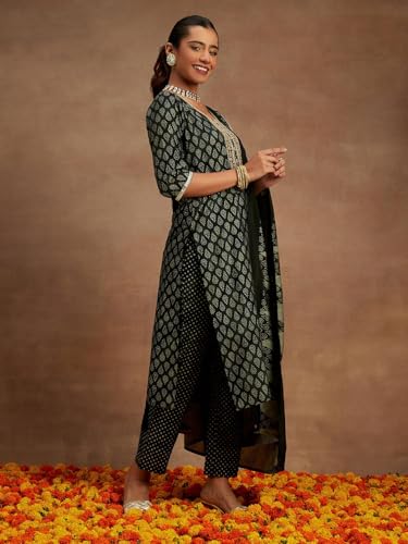 BIBA Women Cotton A-Line Kurta Slim Pant Suit Set