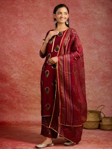 BIBA Women Polyester Printed Narrow Salwar Kurta Dupatta