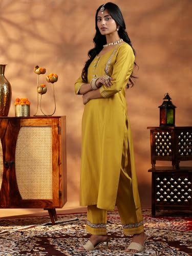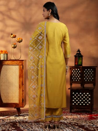 RAJMANDIRFABRICS Women's Cotton Embroidered With Solid Colour Full Straight Kurta Pant With Dupatta Sets