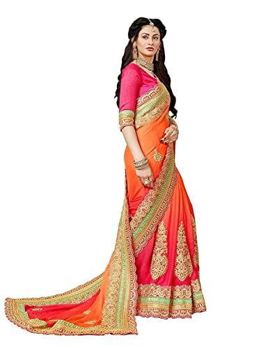 SIRIL Women's Printed Chiffon Saree with Unstitched Blouse Piece