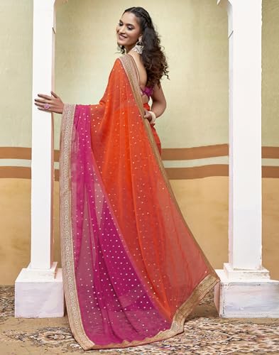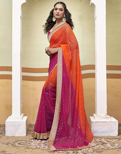 SIRIL Women's Georgette Saree With Beautiful Embroidery Lace Border Bollywood Saree With Unstitched Blouse Piece