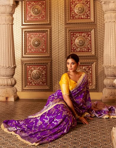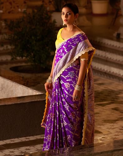 SIRIL Women's Georgette Printed Saree With Unstitched Blouse Piece Combo Pack Of 2