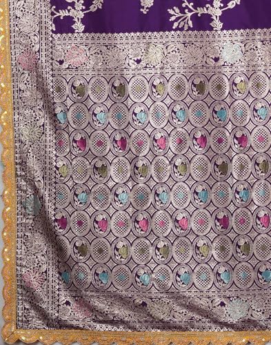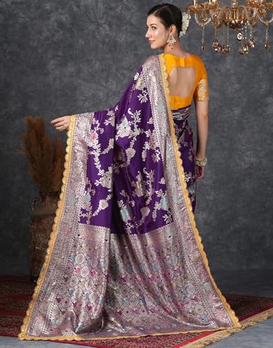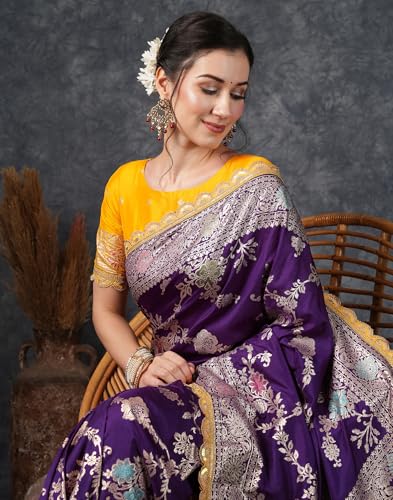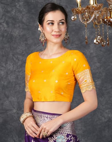 SIRIL Women's Silk Blend Banarasi Jacquard Saree With Unstitched Blouse Piece