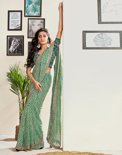 SWORNOF Womens Kanjivaram Silk sequence sarees for women Kanchipuram saree With Boluse Piece