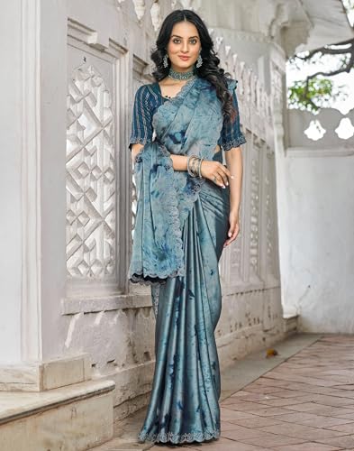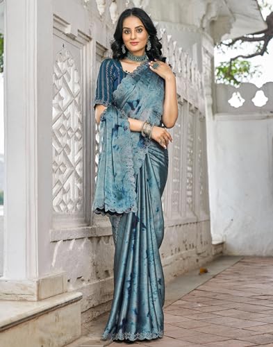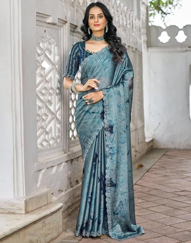 SIRIL Women's Sequence Georgette Saree with Unstitched Blouse Piece