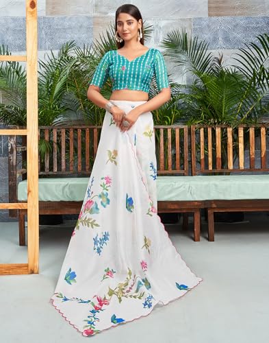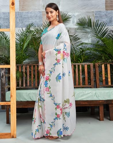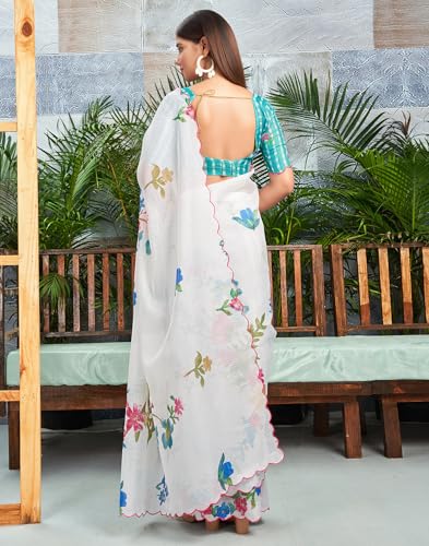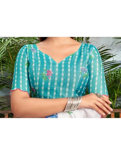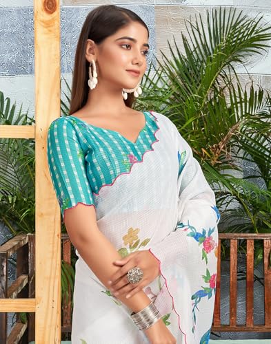 SIRIL Women's Cotton Printed Zari Stripe Saree With Unstitched Blouse Piece