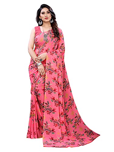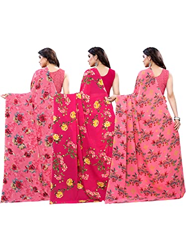 SIRIL Women's Printed Georgette Saree with Blouse Combo Pack Of 2