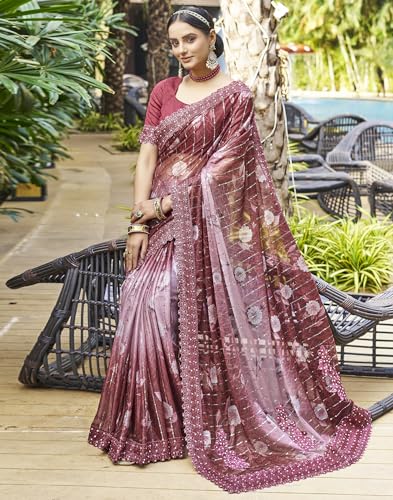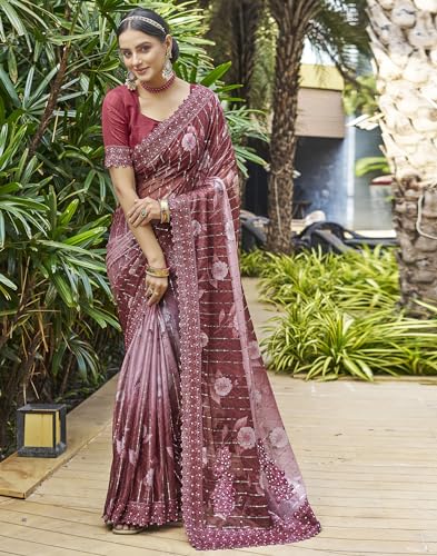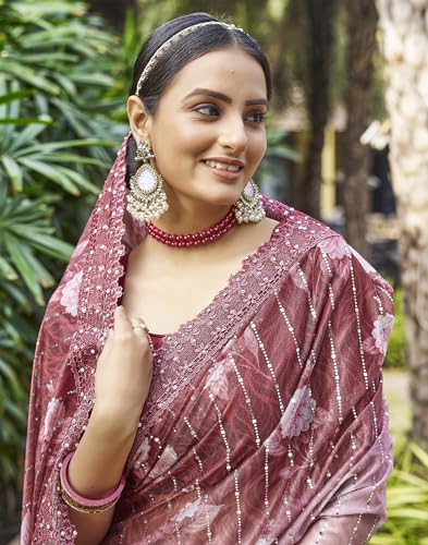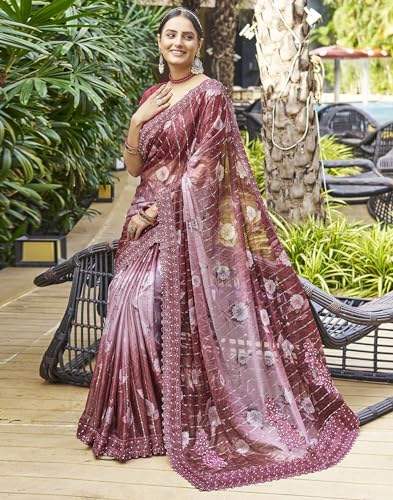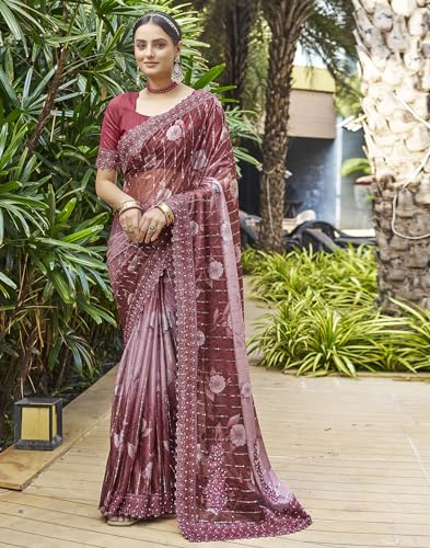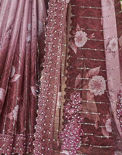 SIRIL Women's Georgette Lace Boarder Saree With Unstitched Blouse Piece