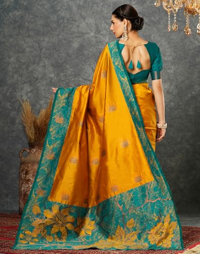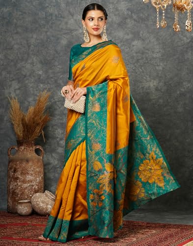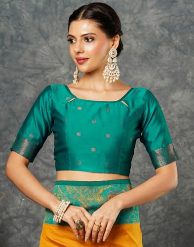 SIRIL Women's Cotton Blend Geometric Printed Jacquard Border Saree With Unstitched Blouse Piece
