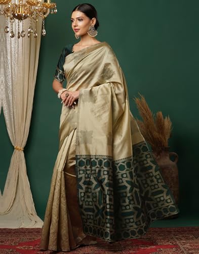 SIRIL Women's Kota Doriya Floral Printed Ready To Wear One Minute Saree With Unstitched Blouse Piece
