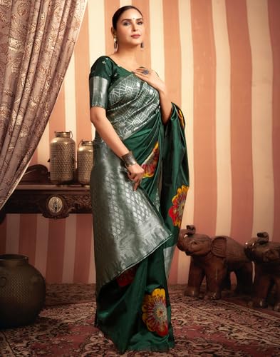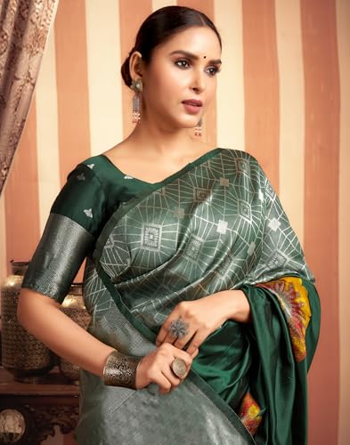 SIRIL Women's Satin Hot Fixing Stone Work Border Saree With Unstitched Blouse Piece