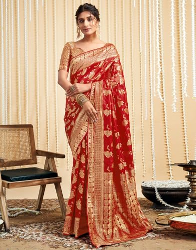 SIRIL Women's Banarasi Silk Jacquard Saree With Unstiched Blouse Piece