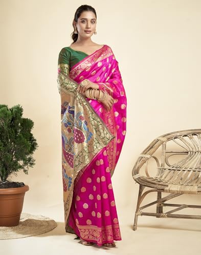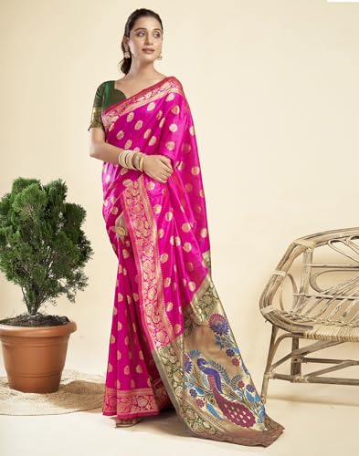 SIRIL Women's Banarasi Soft Art Silk Jacquard Saree With Unstitched Blouse Piece