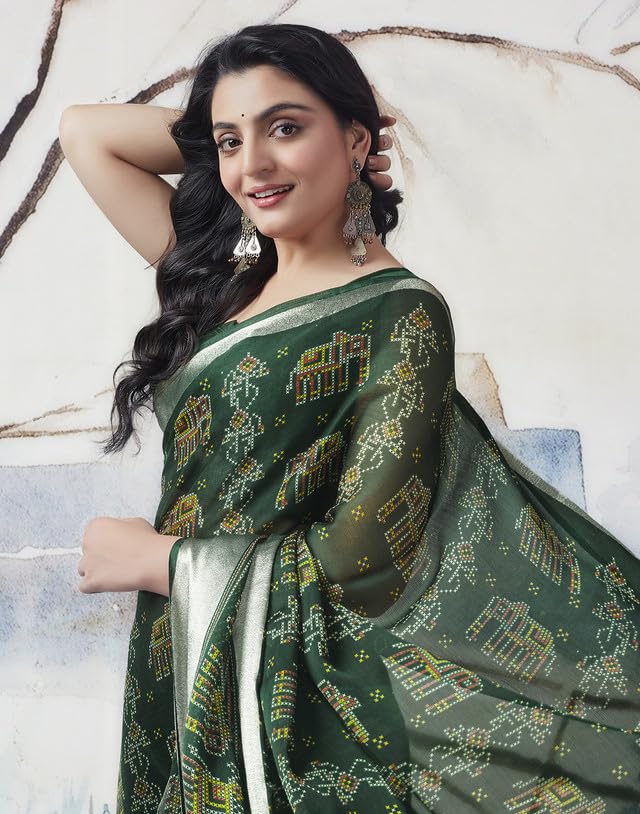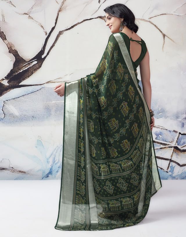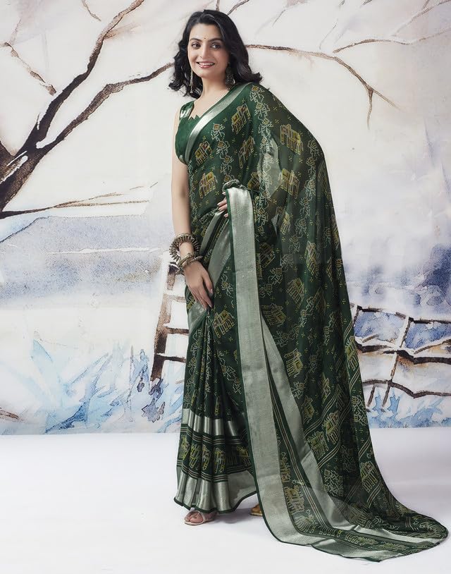 SIRIL Women's Georgette Printed Saree With Unstitched Blouse Piece Combo Pack Of 2