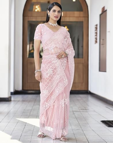 SIRIL Women's Georgette Printed Saree With Unstitched Blouse Piece Combo Pack Of 2
