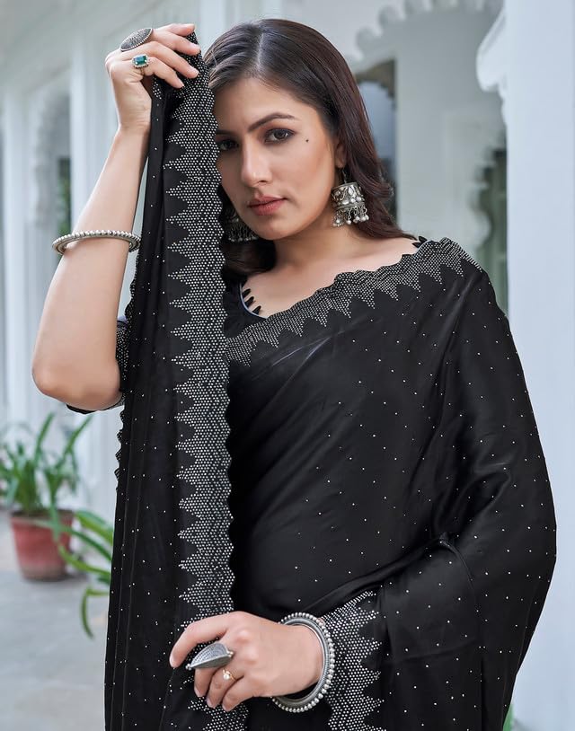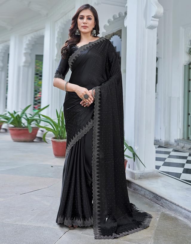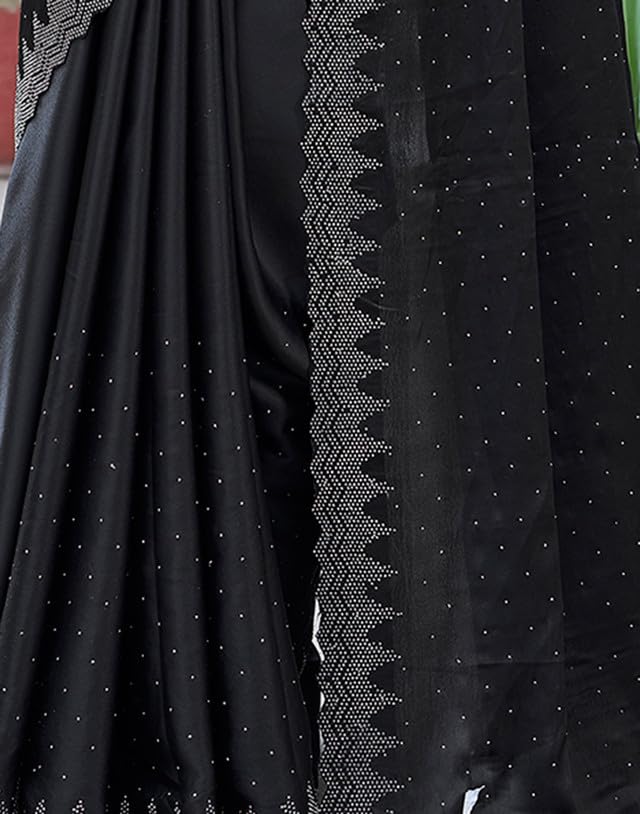 Womanista Women's Embroidered Net Saree with Faux Diamonds (TI3099_Mauve)
