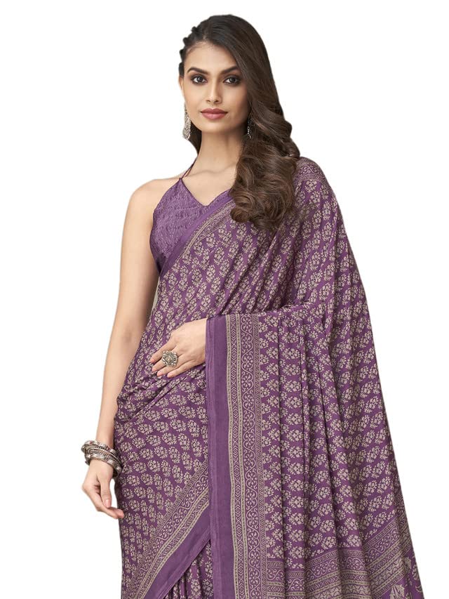 SIRIL Women's Georgette Printed Ready to Wear One Minute Pre Pleated Saree With Unstitched Blouse Piece
