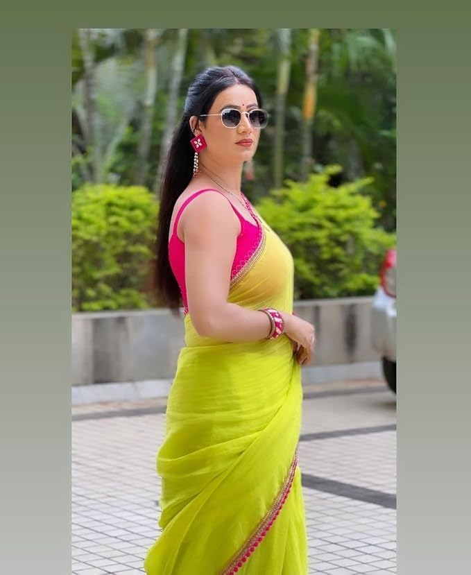 SIRIL Women's Georgette Printed Saree With Unstitched Blouse Piece Combo Pack Of 2
