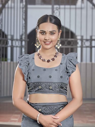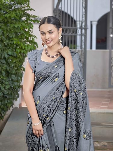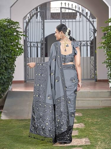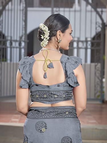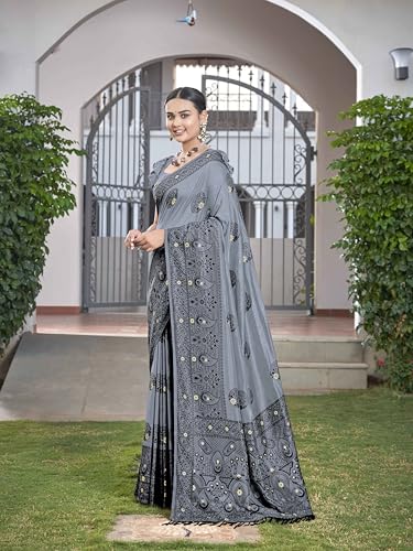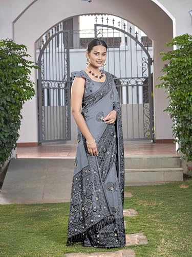 SIRIL Women's Shimmer Chiffon Embellished Work Saree With Unstitched Blouse Piece