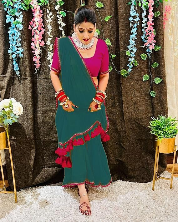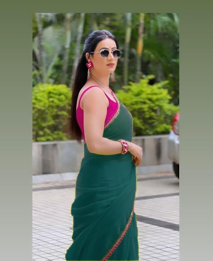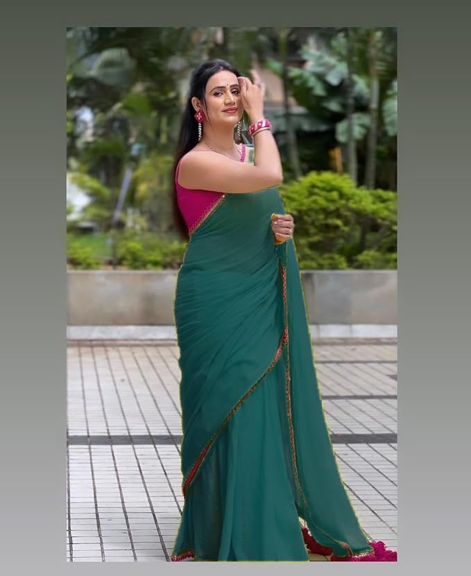SIRIL Women's Cotton Blend Geometric Printed Jacquard Border Saree With Unstitched Blouse Piece