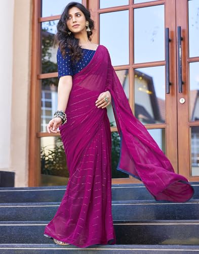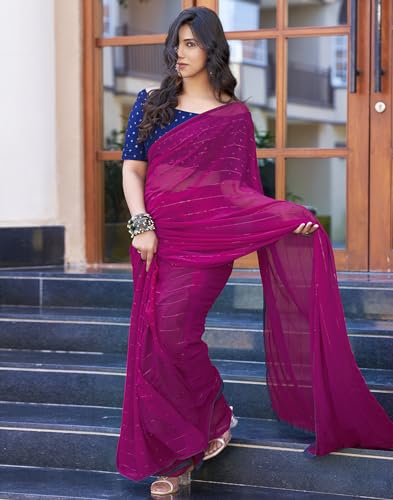 SIRIL Women's Georgette Printed Sequence Work Saree With Unstitched Blouse Piece