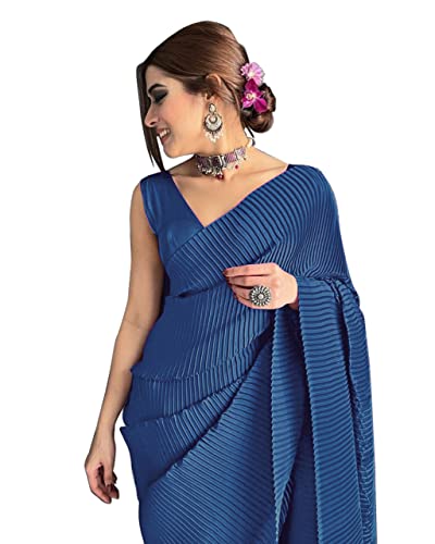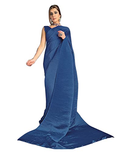 SIRIL Women's Georgette Stone Work Scalloped Border Saree With Unstitched Blouse Piece