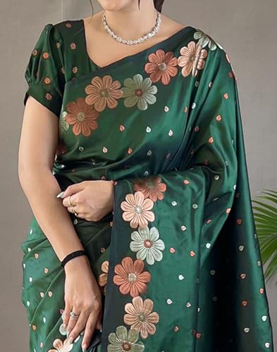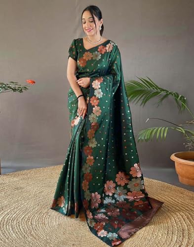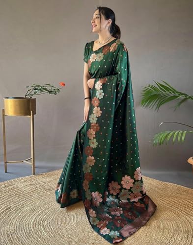 Sidhidata Women's Pure Cotton Linen Copper Zari Boarder & Pallu Butti Work Saree With Unstitched Blouse Piece (Bundi)
