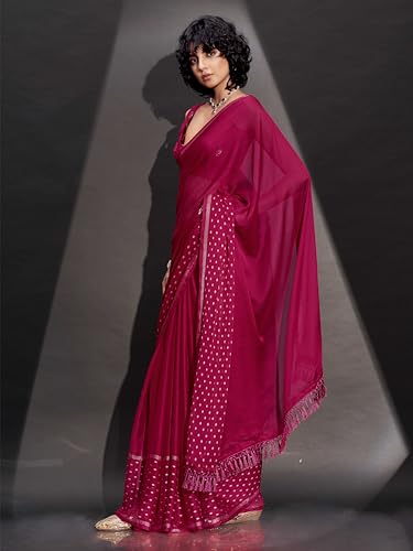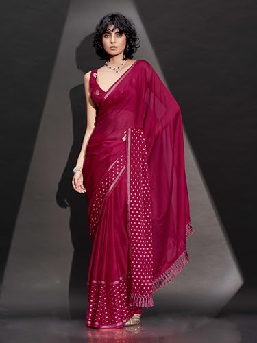 SIRIL Women's Georgette Printed Saree With Unstitched Blouse Piece Combo Pack Of 2