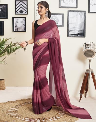 SIRIL Women's Georgette Printed Saree With Unstitched Blouse Piece Combo Pack Of 2