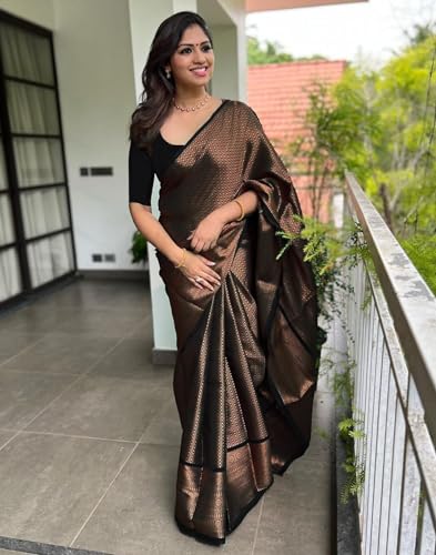 Sidhidata Women's Organza Golden Zari Jacquard Boarder & Pallu ZigZag Saree With Unstitched Blouse Piece (Maharani)