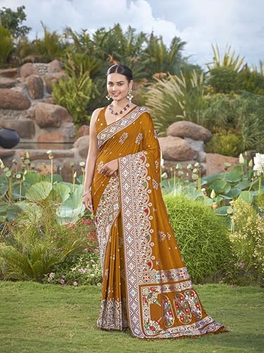 SIRIL Women's Banarasi Art Silk Jacquard Saree With Unstitched Blouse Piece