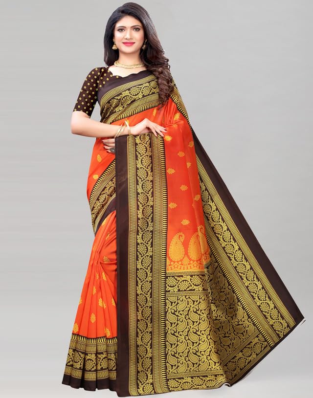 SIRIL Women's Satin Embroidery And Scalloped Border Saree With Unstitched Blouse Piece